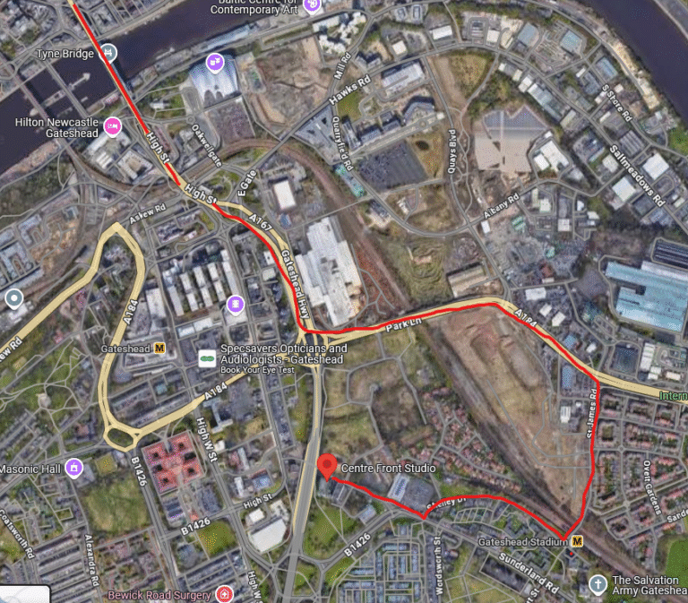 If using Google turning right at the roundabout for the A184 usually overides the directions – alternatively you can add the GAteshead Stadium as a stop to force it to choose this route.